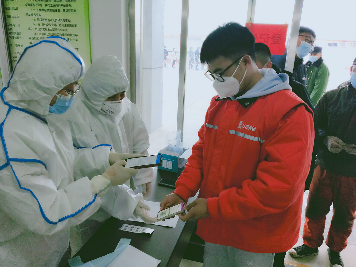 在各分礦加設黨員監測崗,對進出礦區的人員進行測溫登記,嚴格落實消毒、口罩佩戴等防疫要求并每日進行檢查。抽調職業病防治醫院12名經驗豐富的醫務人員到各礦區進行核酸采樣工作,安排30余人做好服務保障,方便員工就近檢測。