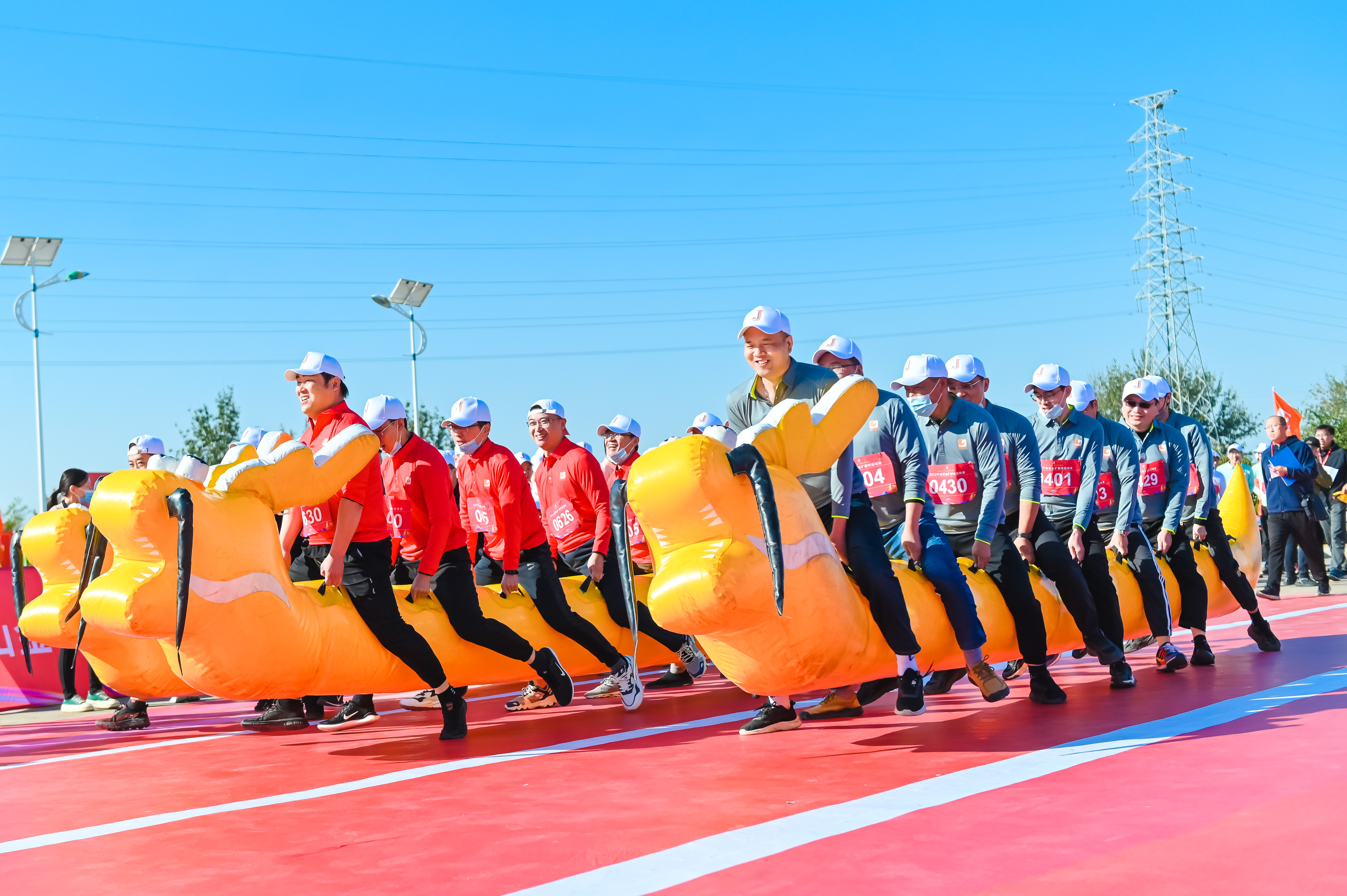 賽場上,300名運動員、10支代表隊,11個比賽項目展開激烈角逐,齊心協力(賽龍舟)、團結就是力量(協力競走)、重走長征路(指壓板障礙賽)、斗志昂揚創一流(十分鐘跳繩)、飛奪瀘定橋(搭橋過河)各個項目集趣味性、娛樂性、競爭性于一體,高難度挑戰運動員的眼力、腳力、手力等綜合能力,讓大家在運動中享受快樂,在快樂中尋找健康,在健康中體驗團隊精神。